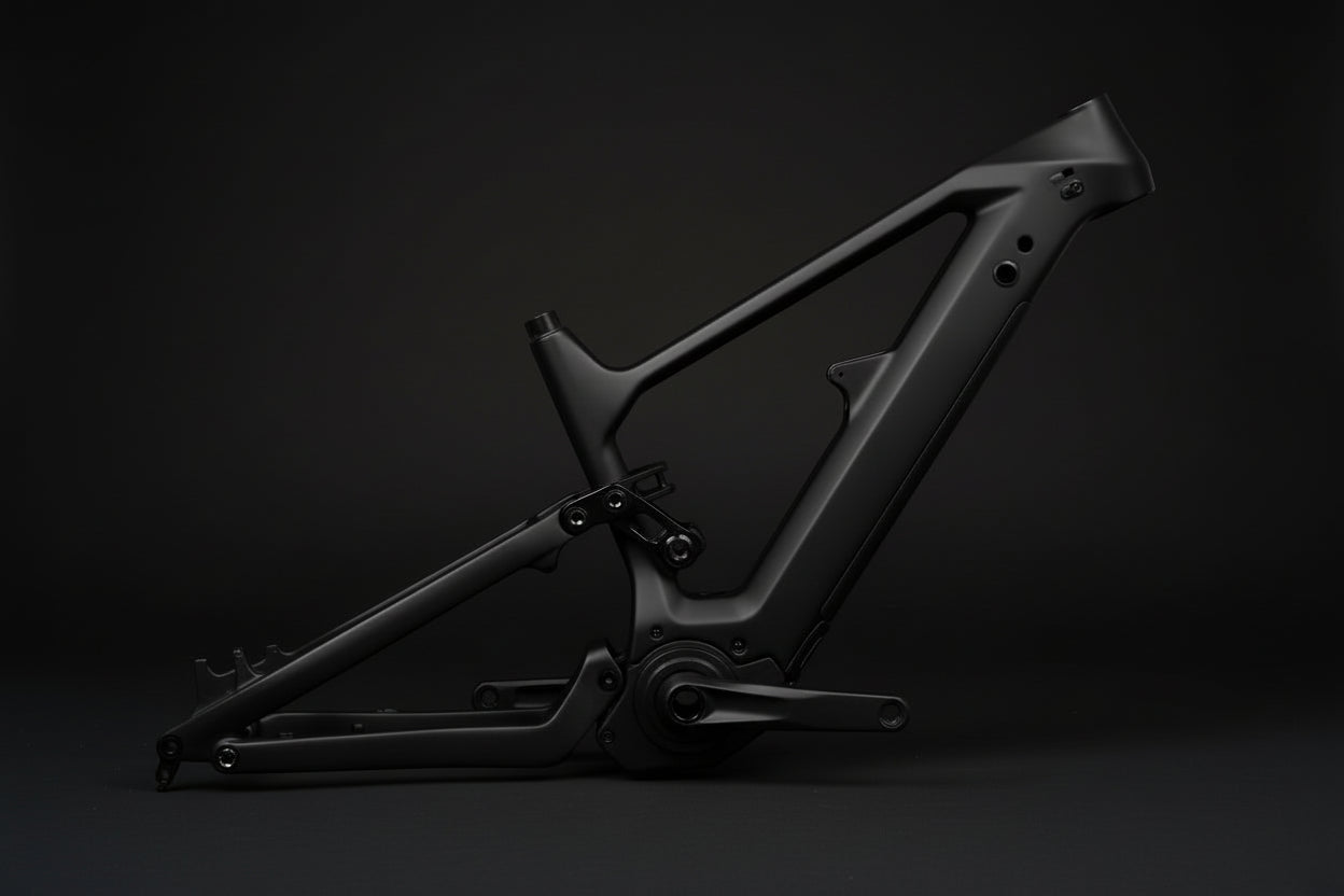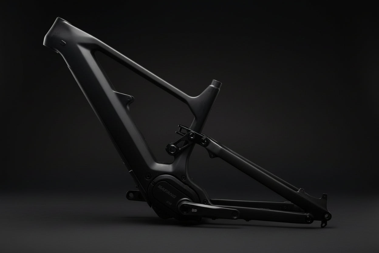 With 150mm of rear travel and 160 to 170mm up front, generous tire clearance, and compatibility with high-output Bafang motors, this frame is built for riders who want the feel of a modern enduro-inspired eMTB without compromise. Whether you’re climbing technical terrain or charging descents, the F170-E provides a balanced, planted ride with clean integration and modern standards throughout.